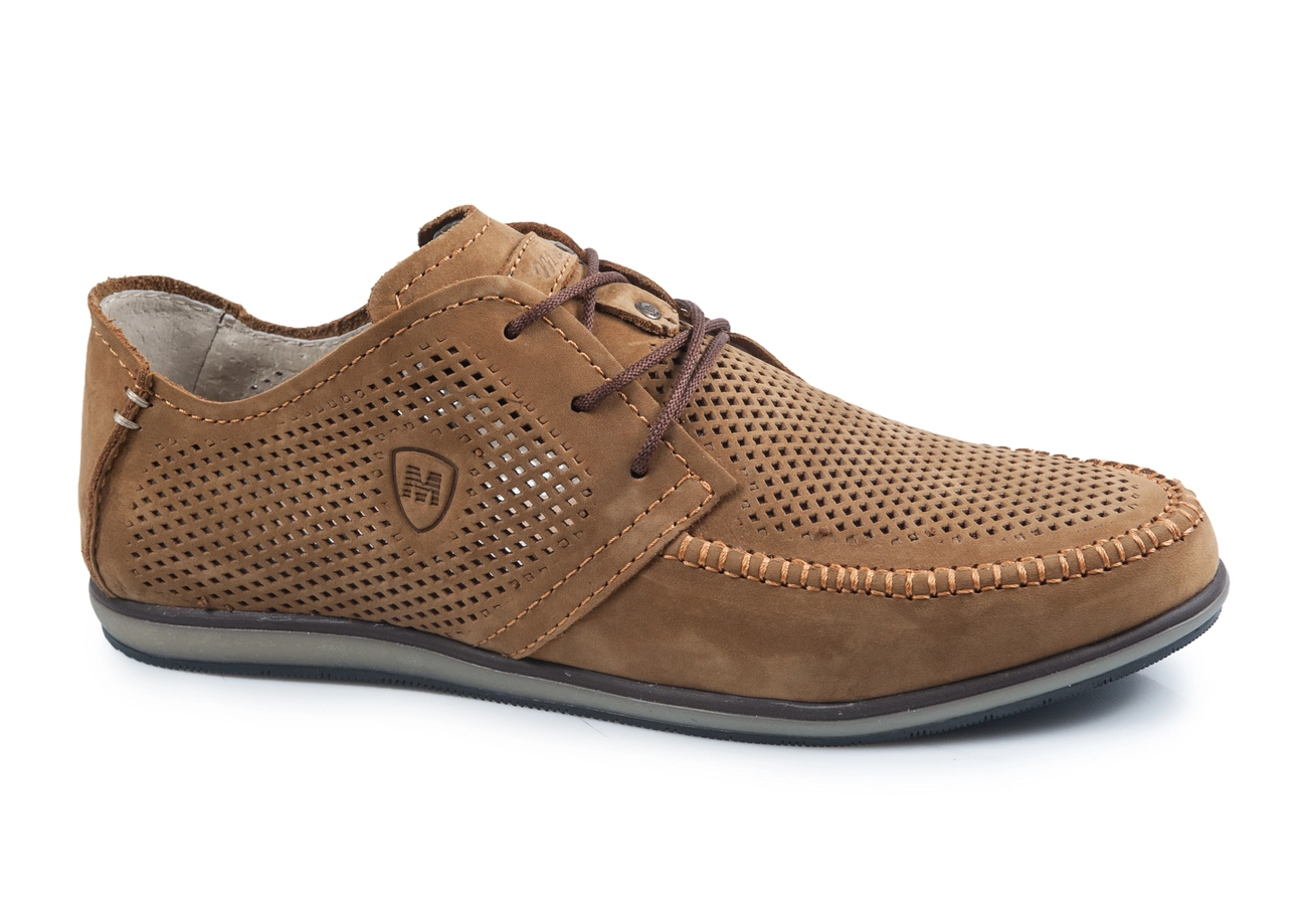 Летние мокасины Maxus. Модель ШН нубук табак с перфорацией.